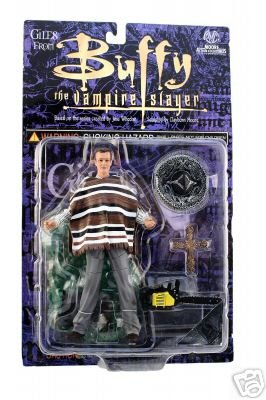 PRODUCT DESCRIPTIONS:Rare Variant edition of Buffy's watcher, Rupert Giles (Anthony Stewart Head) from the hit TV series Buffy the Vampire Slayer starring Sarah Michelle Gellar, Alyson Hannigan, James Marsters ..... Giles is decked out in his Fiesta Halloween outfit compelete w.chainsaw, cross and sombraro. This Figure was made in limited numbers by Clayton Moore.